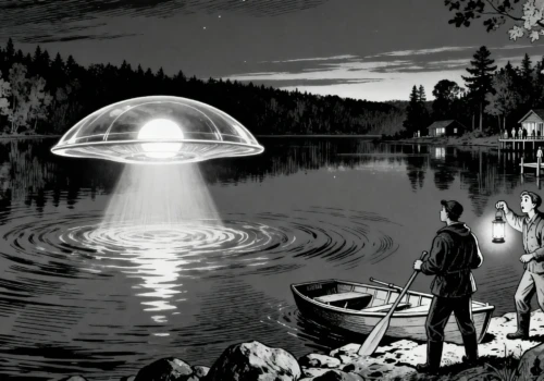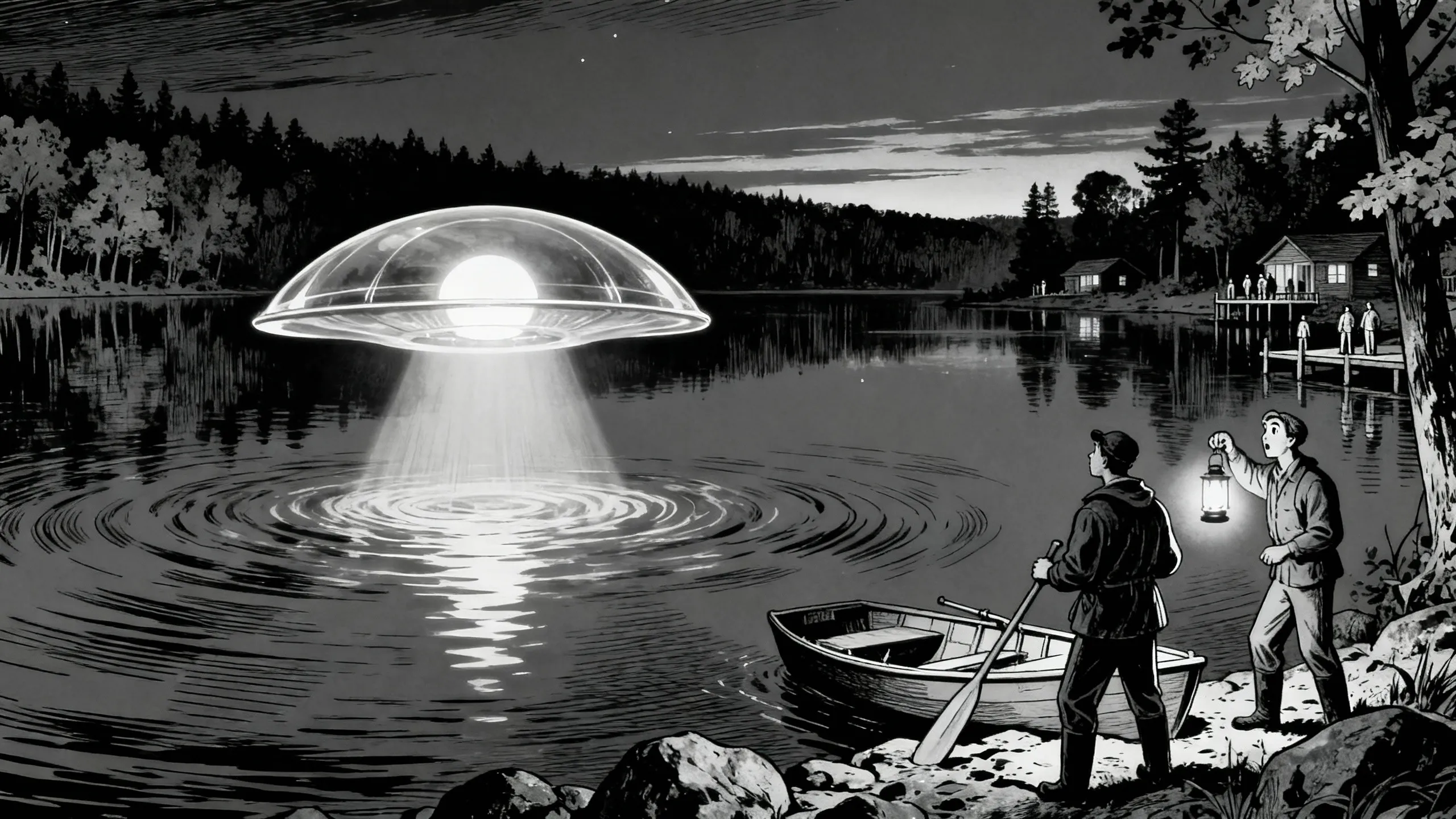 Veden yläpuolella, matalalla mutta vakaasti, leijui kupolinmuotoinen esine, jonka himmeä hohde ei muistuttanut taskulamppua, venevaloa tai minkään lentokoneen valaisua. Valo ei ollut terävä — se oli pehmeä, tasainen, kuin olisi hohtanut sisältäpäin. Mikään ääni ei rikkonut ilmaa.